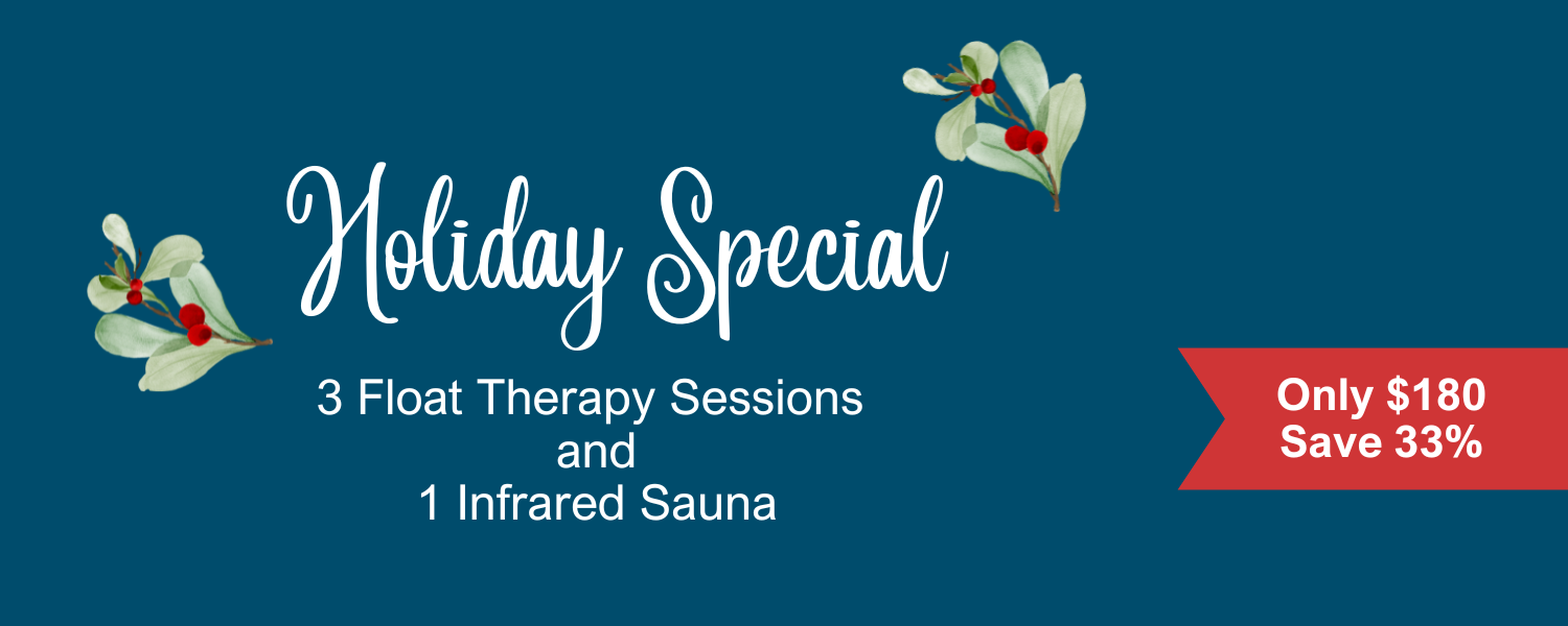 This Holiday Package includes three 60-minute float therapy sessions and one 45-minute infrared sauna session for only $180.